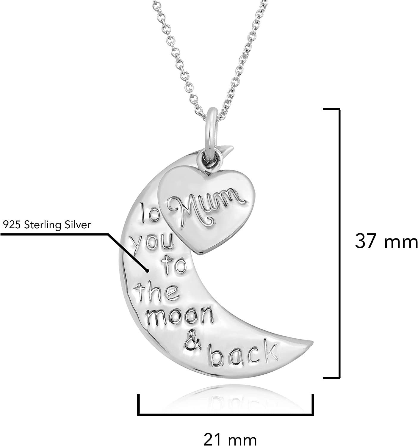 AeraVida Mom or Wife I Love You to the Moon Message Mothers Day .925 Sterling Silver Necklace | Sterling Silver Necklace for Women | Long Necklaces for Women | Necklace Women Jewelry