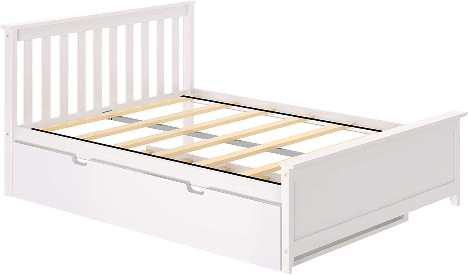 • Including single bed size trunk + slats. Trundle fits standard double bed mattresses up to 20.32 cm thick. The ramps overlap the bed rails to prevent sliding under the bed.